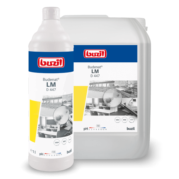 • 1 x Buzil Budenat LM D 447 Materialschonendes Desinfektionsmittel (1 Liter oder 10 Liter).