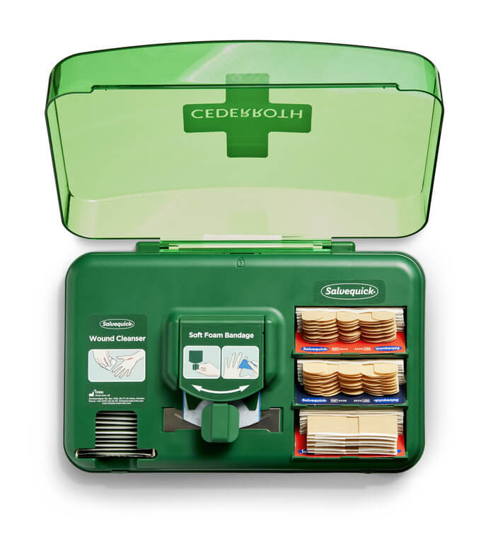 Cederroth Wound Care Dispenser mit Inhalt – kompakte Lösung für schnelle Wundversorgung