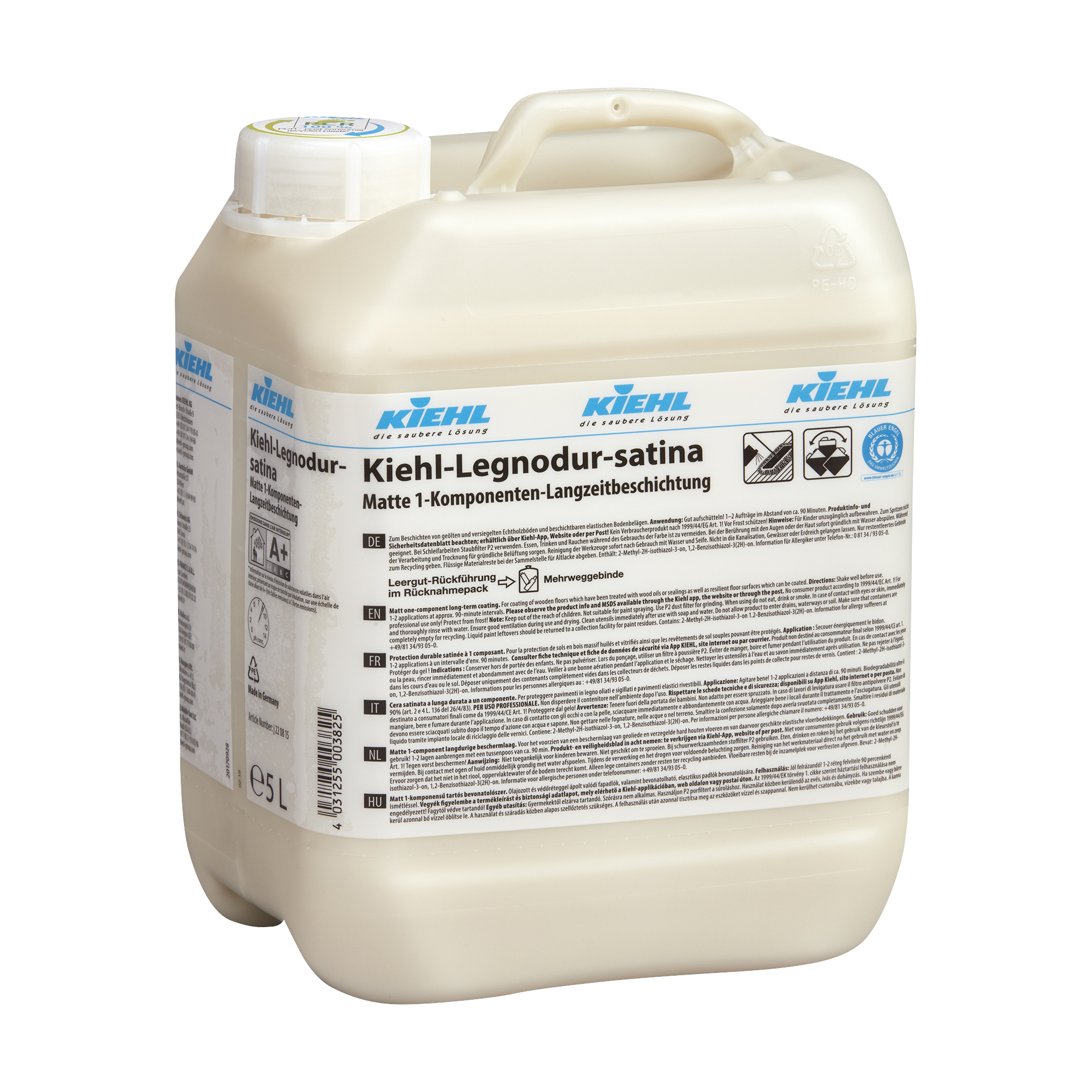 Mit der Kiehl-Legnodur-satina Permanentbeschichtung schützen und pflegen Sie Ihre Holzböden mit einer matten, strapazierfähigen Oberfläche. Perfekt für Anwender, die Wert auf eine natürliche Optik und langlebigen Schutz legen.