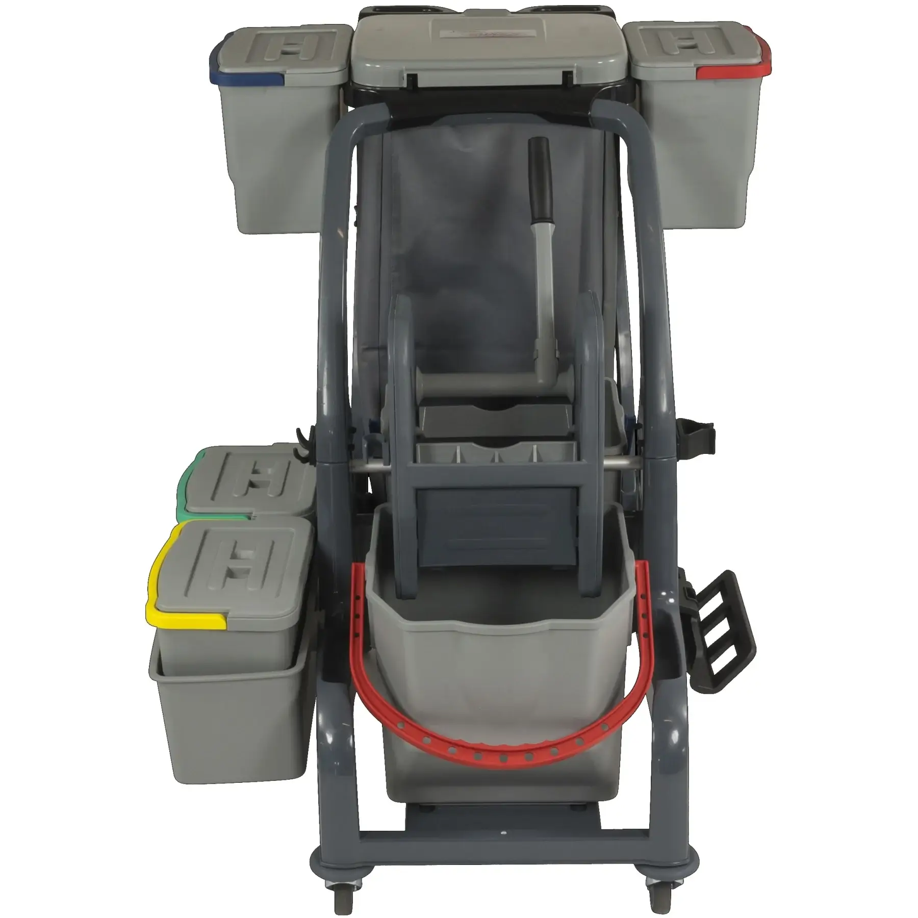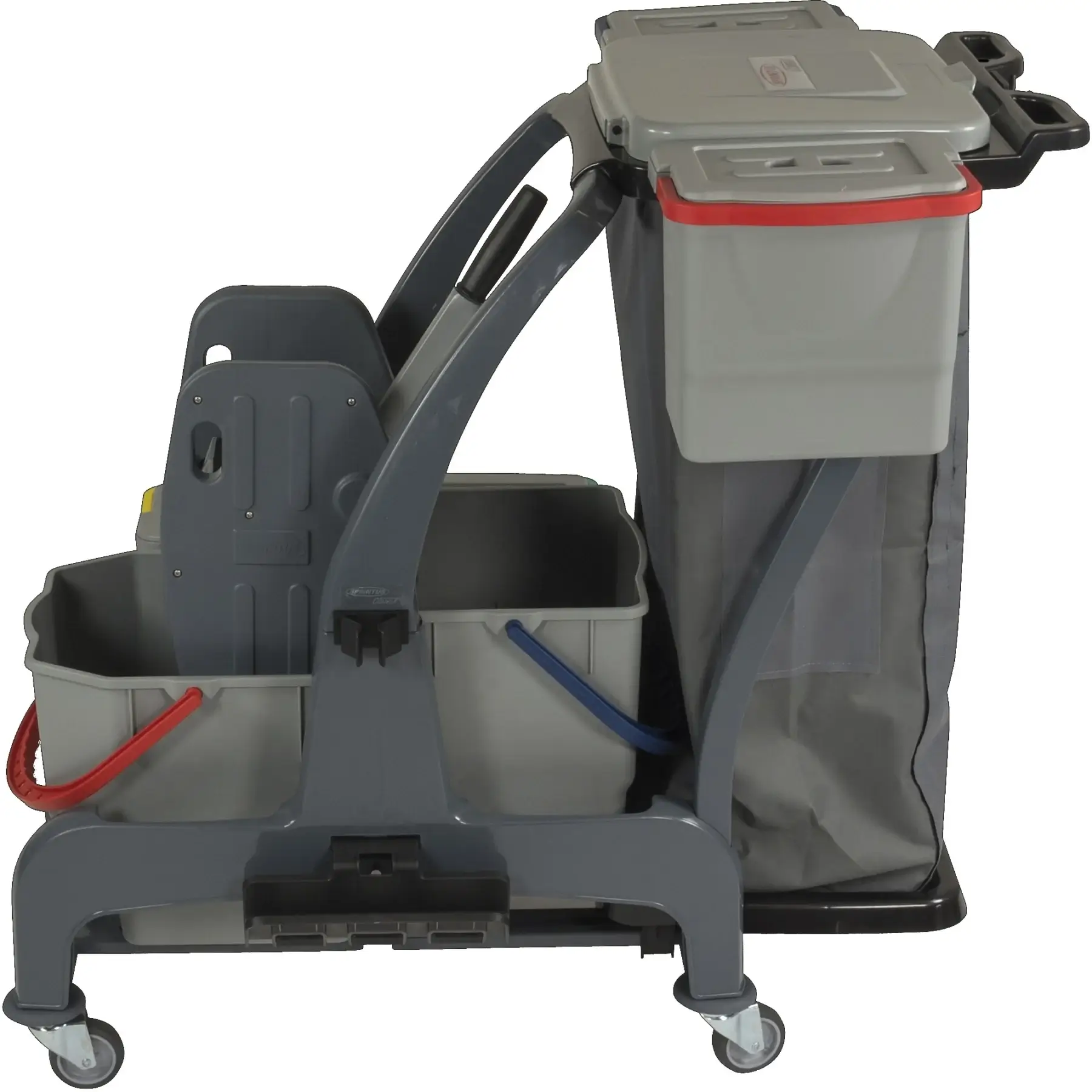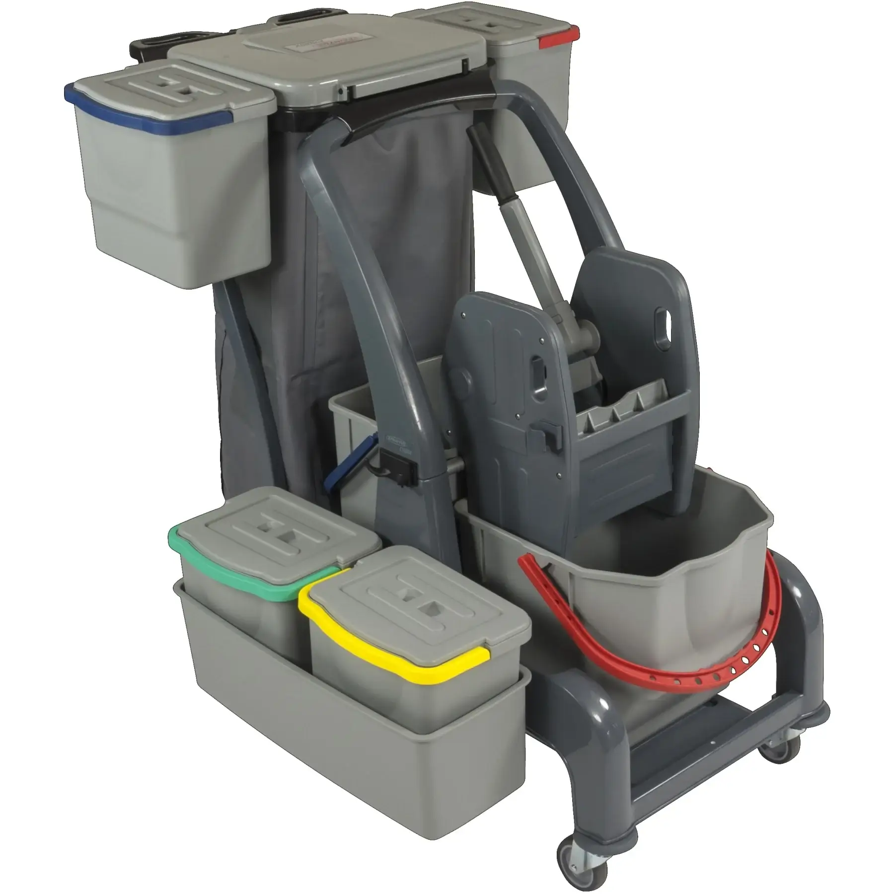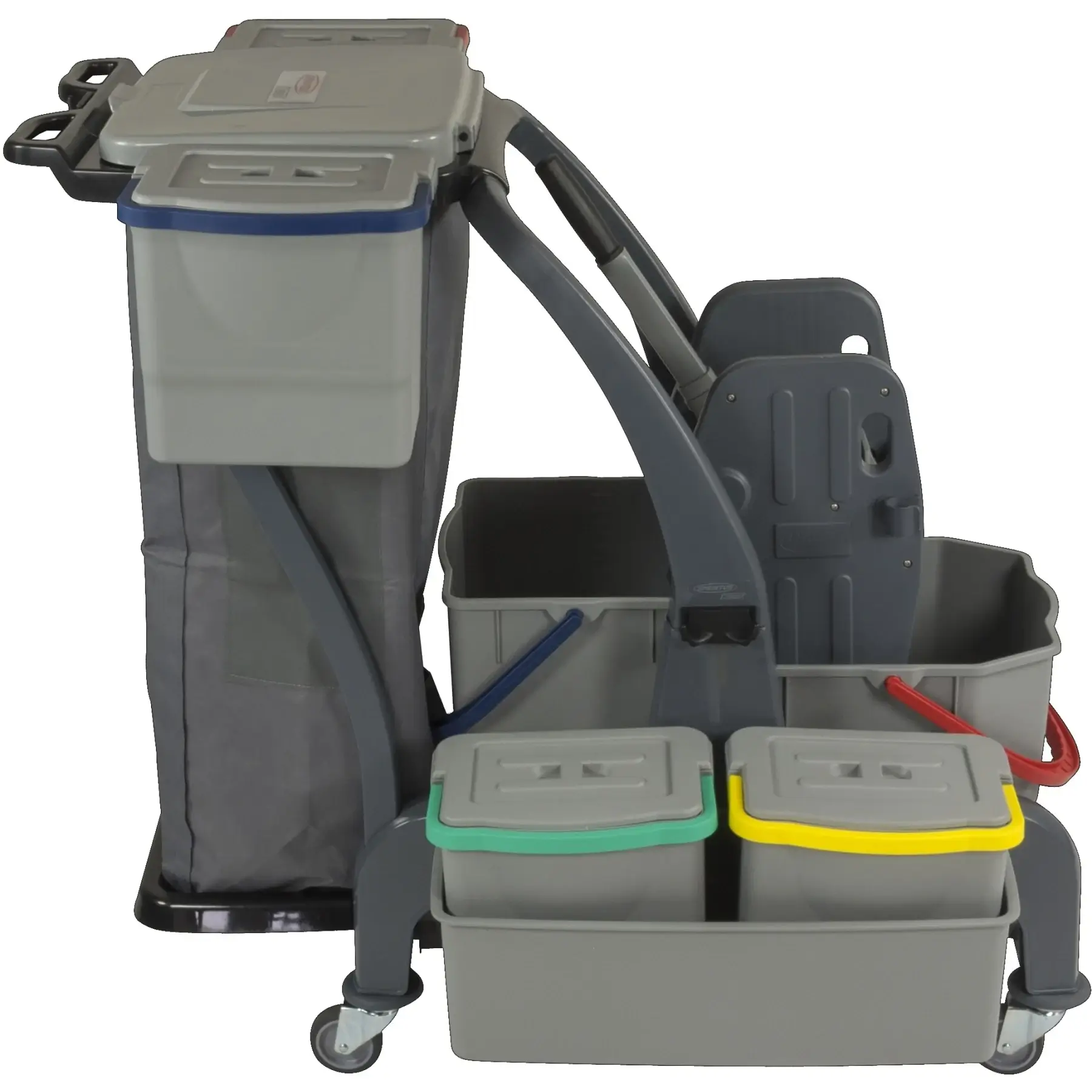 Die zwei seitlich integrierten verschließbaren 6-Liter-Eimer, die blickdichte 70-Liter-Abfallsackhalterung und das Ablagefach für Reinigungspläne machen den COMBIX PRO besonders vielseitig und ideal für strukturierte Arbeitsabläufe.