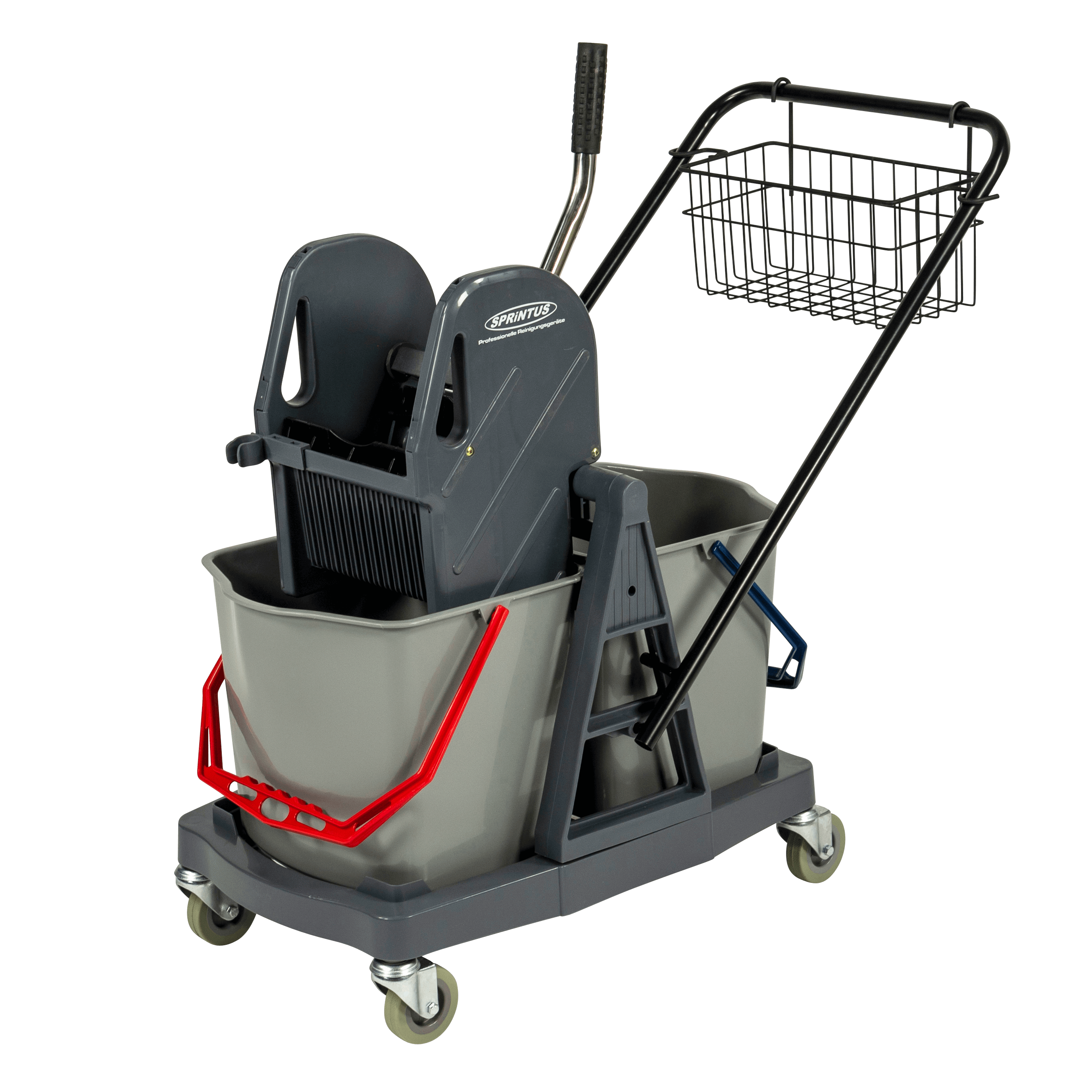 • 1 x Sprintus Einfachfahreimer 27 Liter inkl. verchromtem Metallrahmen und Doppelbacken-Mopp-Presse